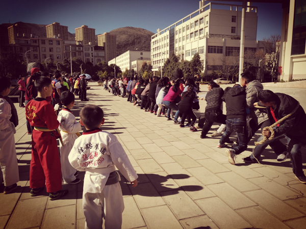 拔拔河比賽時,各隊員工拼盡全身上下的每一分力,現場的每一次“拉鋸戰(zhàn)”把大家的心和力擰成一股繩。